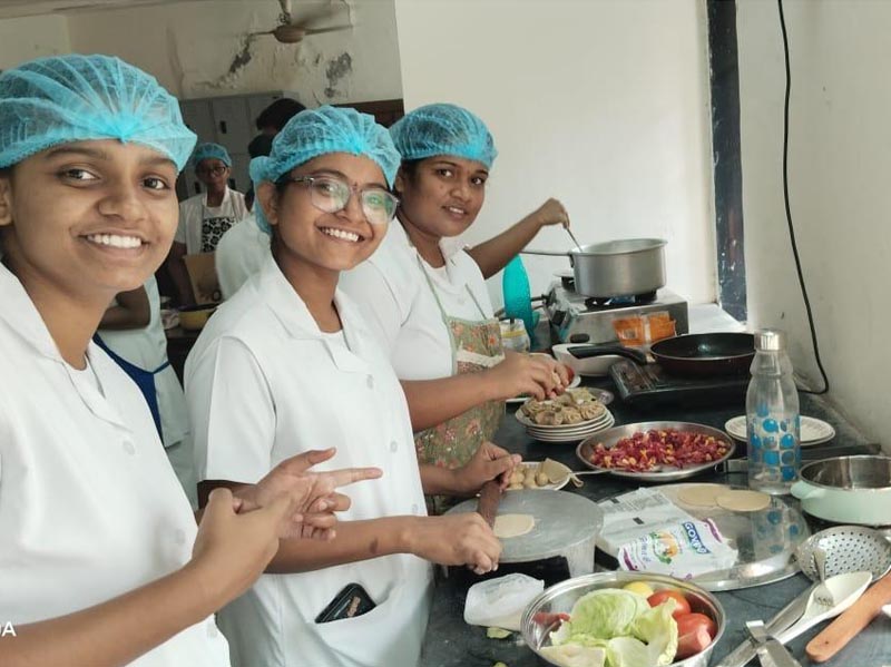 • We have facilities in Nutrition Lab like glassware articles, refrigerator, Mixture and juicer, Dinner Set, Dining Table with Chair, Table met, stove, weighting machine.